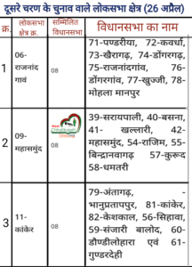 गरियाबंद (छत्तीसगढ़)। छत्तीसगढ़ में 26 अप्रैल को होने वाले दूसरे चरण के तहत् तीन लोकसभा सीटों क्रमशः राजनंदगांव, महासमुंद व कांकेर के 41 प्रत्याशियों के भाग्य का फैसला 52 लाख 84 हजार 938 मतदाता करेंगे इसमें पुरुष मतदाताओं की संख्या 26 लाख 5 हजार 350 है जबकि महिला मतदाताओं की संख्या 26 लाख 79 हजार हैं जबकि थर्ड जेंडर मतदाताओं की संख्या 60 के लगभग है तीनों ही सीटों पर बनाए गए मतदान केंद्रो की संख्या 6567 है।यहां बताना लाजिमी हैं कि 2019 के आम चुनाव में तीनों ही सीटों पर भाजपा का कब्जा था, 18 लाख 68 हजार 021 मतदाता वाले हाईप्रोफाइल सीट राजनंदगांव में इस दफे वहां के मौजूदा सांसद संतोष पांडे और प्रदेश के पूर्व मुख्यमंत्री भूपेश बघेल के मध्य कांटे का मुकाबला है यहां कुल 15 प्रत्याशियों में दो महिला प्रत्याशी भी है, 17 लाख 65 हजार 470 मतदाताओं वाले एक अन्य हाईप्रोफाइल सीट महासमुंद में 17 प्रत्याशियों में एकमात्र महिला प्रत्याशी पूर्व संसदीय सचिव रूप कुमारी चौधरी के साथ पूर्व ग्रहमंत्री ताम्रध्वज साहू कड़ी टक्कर में उलझे नजर आ रहे है। तो वहीं नक्सल प्रभावित कांकेर संसदीय सीट पर अंतागढ़ के पूर्व विधायक भोजराज नाग और कांग्रेस के बीरेश ठाकुर के मध्य करीबी मुकाबले का पेंच फंसा हुआ है गौरतलब हैं कि ठाकुर 2019 के चुनाव में महज 7000 मतों से पराजित हुए थे यहां नाग और ठाकुर के अतिरिक्त सात अन्य दावेदार मैदान में डटे हुए हैं।राजनांदगांव व महासमुंद सामान्य सीट हैं तो कांकेर अनूसूचित जनजाति के लिए आरक्षित है।प्रदेश की सभी ग्यारह सीटों का सटीक चुनावी विष्लेषण पढ़िए 07 मई के पश्चात...।
